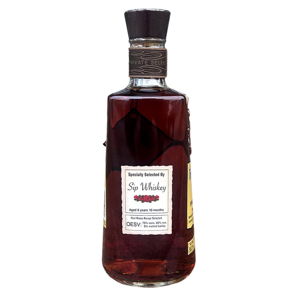 Expertly selected by Sip Whiskey from Four Roses Distillery, the OESV Single Barrel is a truly unique bourbon. Distilled from a mash bill of 75% corn, 20% rye, and 5% malted barley, this 117 proof bourbon is aged for an impressive 8 years and 10 months, resulting in a delightful barrel strength. Enjoy the exceptional craftsmanship and flavor profile of this meticulously crafted bourbon.