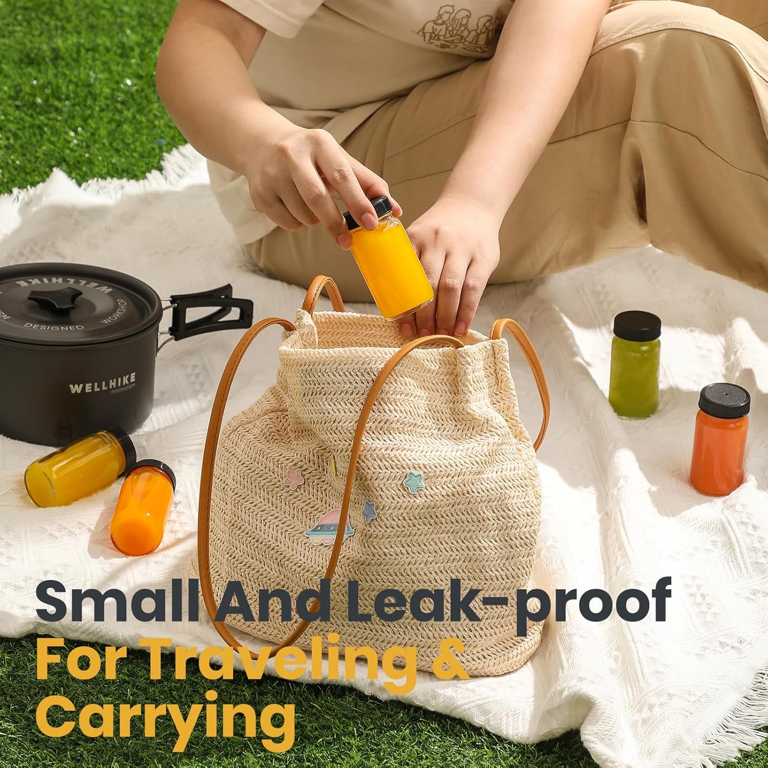 - √Portable Bottles with Versatile Uses – These lightweight but durable shot bottles are perfect for storing juicing, ginger, wellness or other shots, potion, oil, beverage and samples, syrup, salad dressings, seasonings, and other kinds of foods! For travel or for grab-and-go, these 2oz / 60ml bottle size takes up minimal space in your bag or your refrigerator.